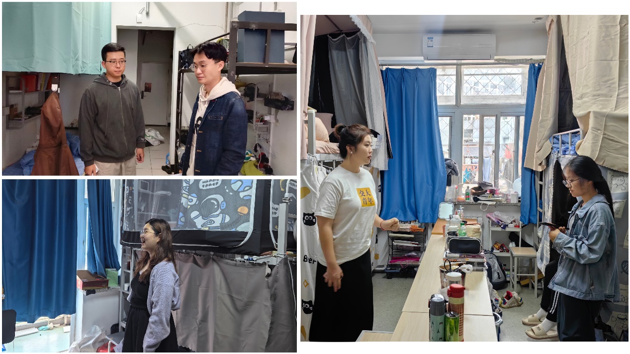 在走访中,老师们对于同学们十一期间的去向进行了询问,核实了不在校住宿学生信息,嘱咐同学们假期期间注意安全,警惕网络诈骗,如有离校及时请销假。对于毕业班学生,老师们关心同学们毕业去向的规划,勉励大家明确方向,持之以恒。学生工作组提醒同学们要共同维护宿舍、专教环境,营造良好的生活学习氛围。