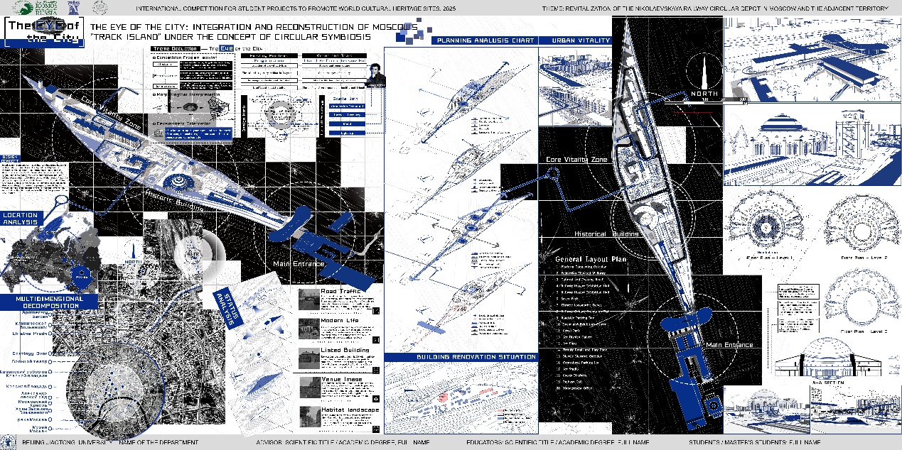 我院获奖团队成员包括——教授:韩林飞、高巍;学生:袁铭颢、范佳诺、王妍、邢超楠,他们的参赛作品——《THE EYE OF THE CITY: INTEGRATION AND RECONSTRUCTION OF MOSCOW'S "TRACK ISLAND" UNDER THE CONCEPT OF CIRCULAR SYMBIOSIS》(《城市之眼:循环共生理念下莫斯科 “轨迹孤岛” 的整合与重构》),将循环共生理念与城市空间重构深度融合,展现了扎实的专业功底与创新的设计思维。